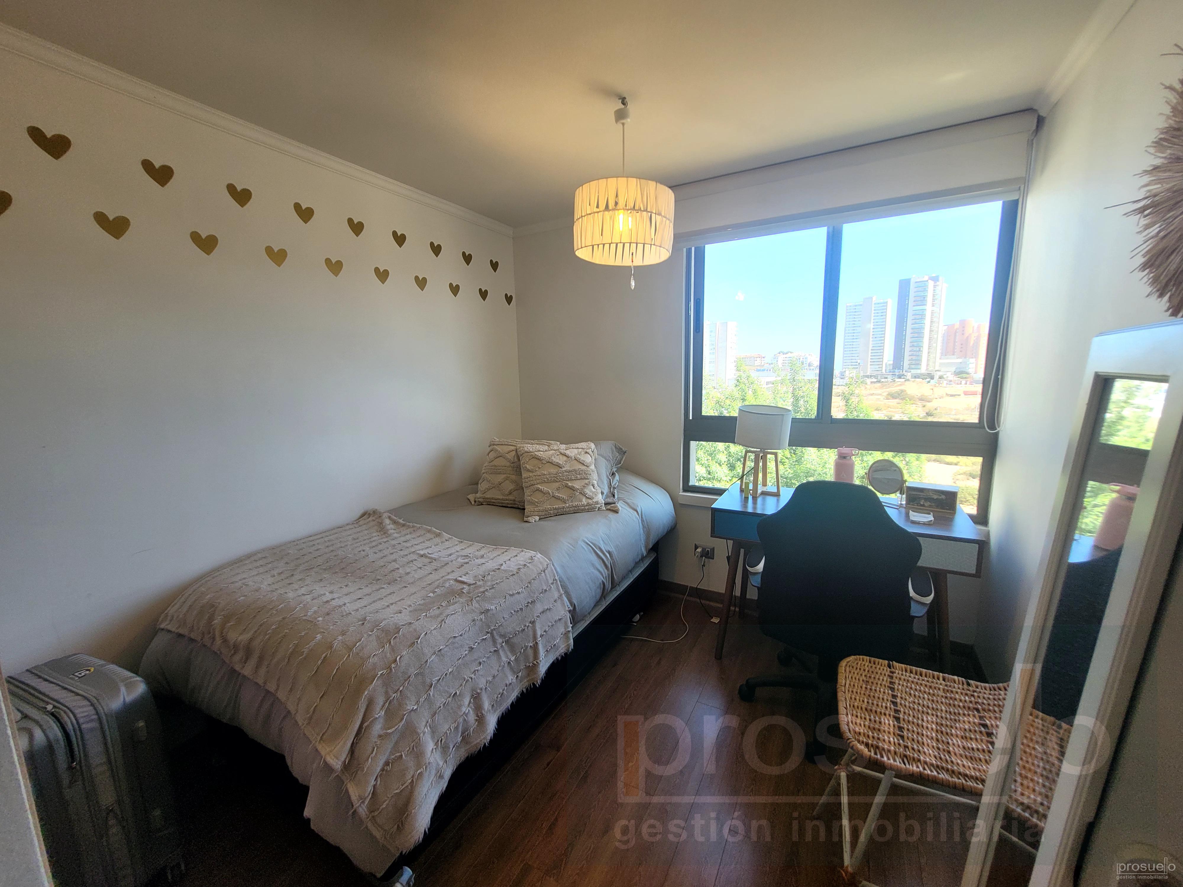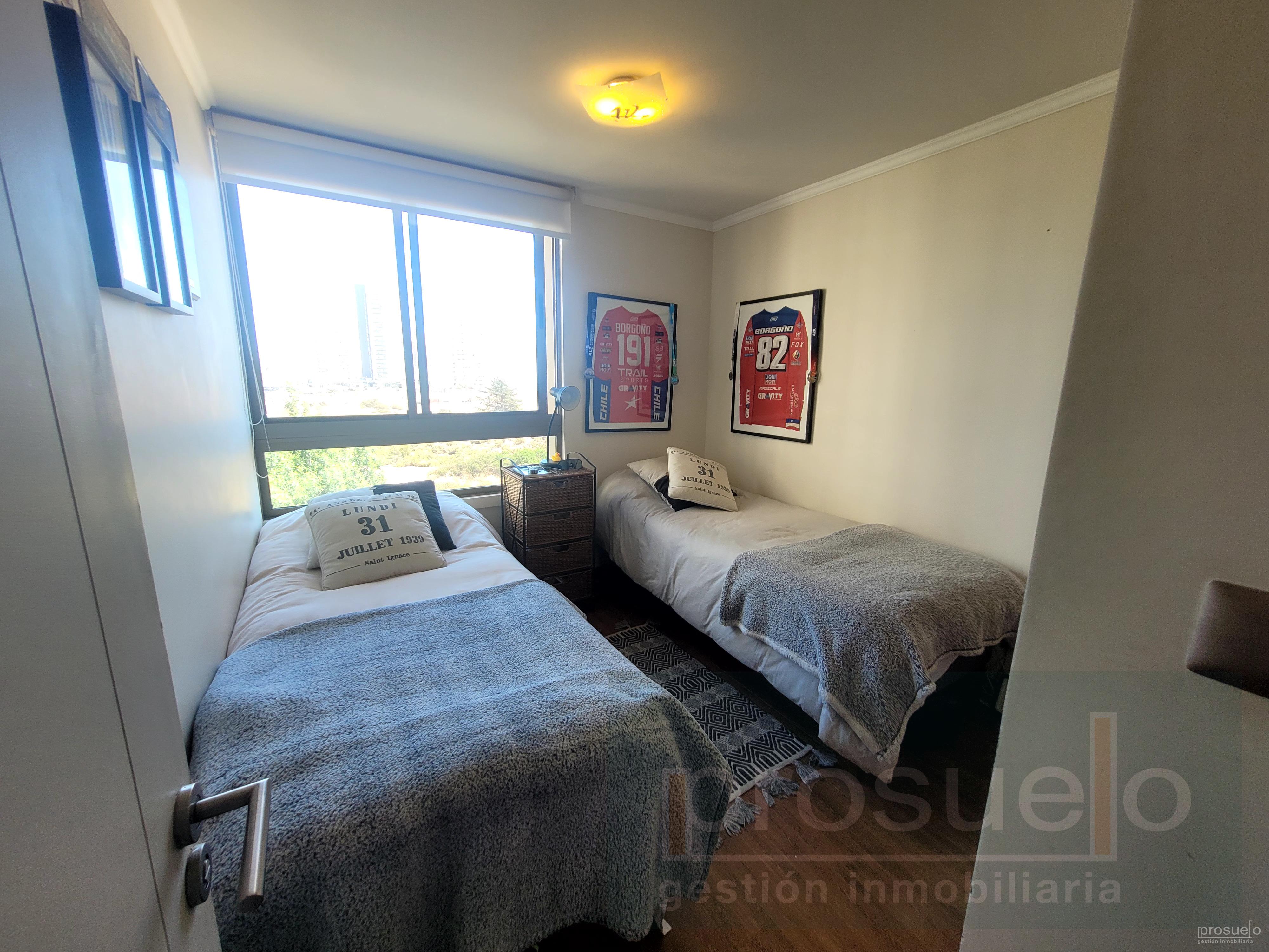 Cómodo y luminoso departamento familiar en consolidado sector emergente límite de Viña del Mar y Concón. Edificio moderno con variado equipamiento ubicado en vía estructurante , próximo a parque, áreas verdes, colegios, supermercados, gimnasio, restaurantes y cafeterías. Control de acceso en portería con seguridad permanente 24 horas